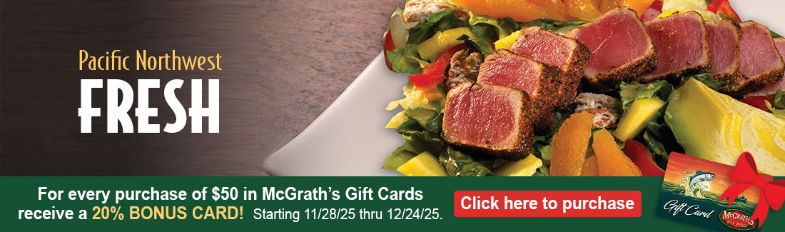 For holidays, birthdays or corporate incentives, McGrath's gift certificates are always in season. Available at each restaurant from your server–or click the button below to purchase one online!