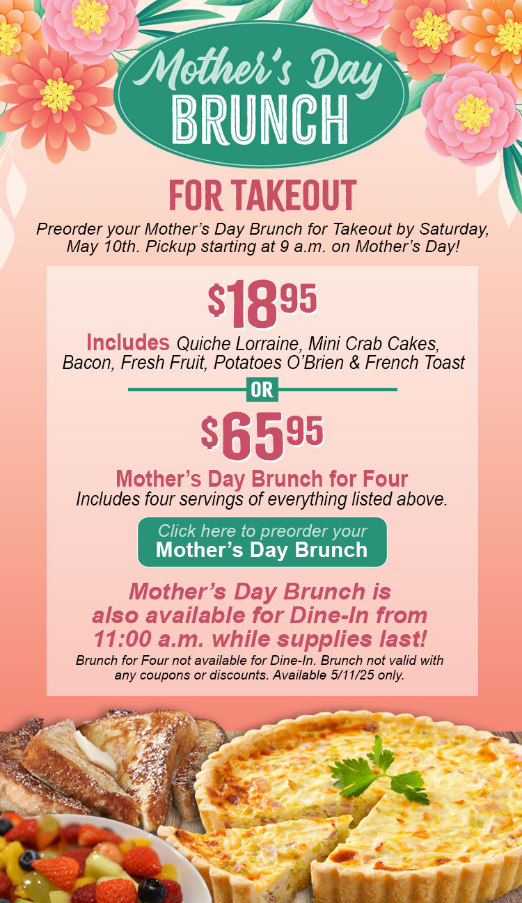 Present coupon to receive offer. For Takeout, present coupon on Pickup. Valid 4/1/25-5/4/25.