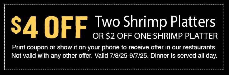 Present coupon to receive offer. Valid 9/10/24-10/6/24. Dinner is served all day. Seafood Trios available for a limited time only.
