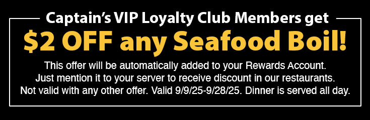 Try our Seafood Boils and get $2 OFF if you're a Loyalty Club Member!
