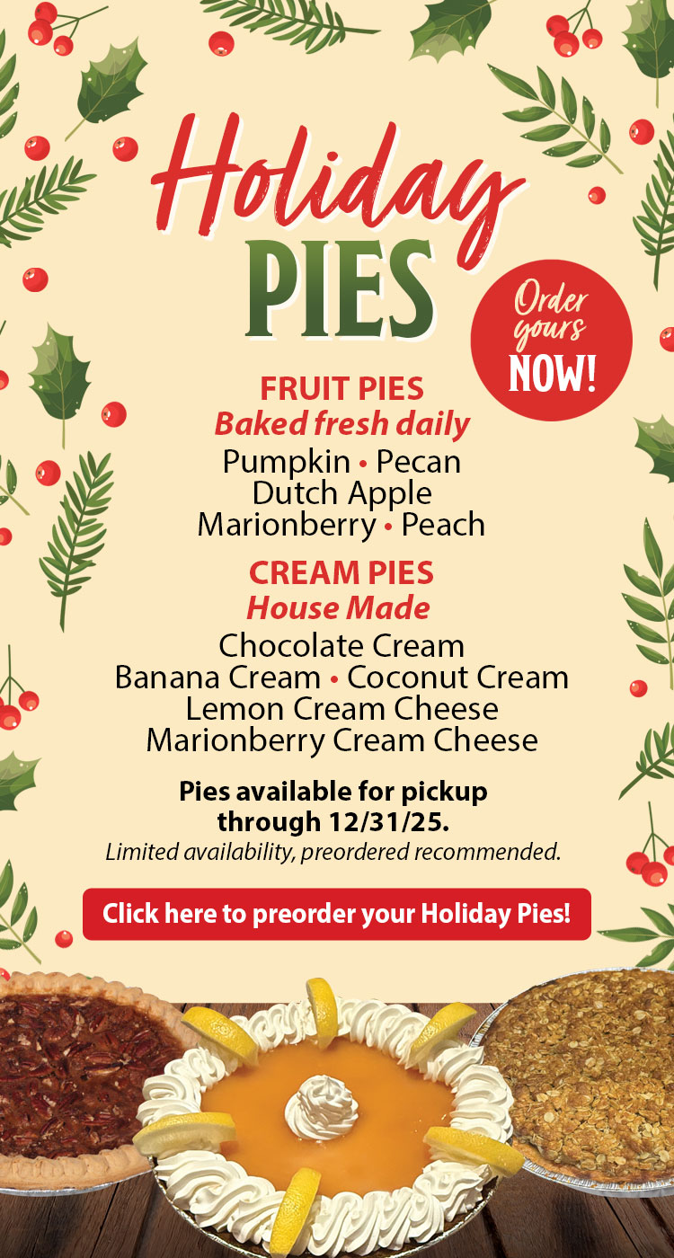 Choice of Chowder or Salad, Choice of 5 Selected Entrées, Choice of Dessert: Marionberry Cobbler ala Mode, Key Lime Pie, or Ice Cream Sandwich.